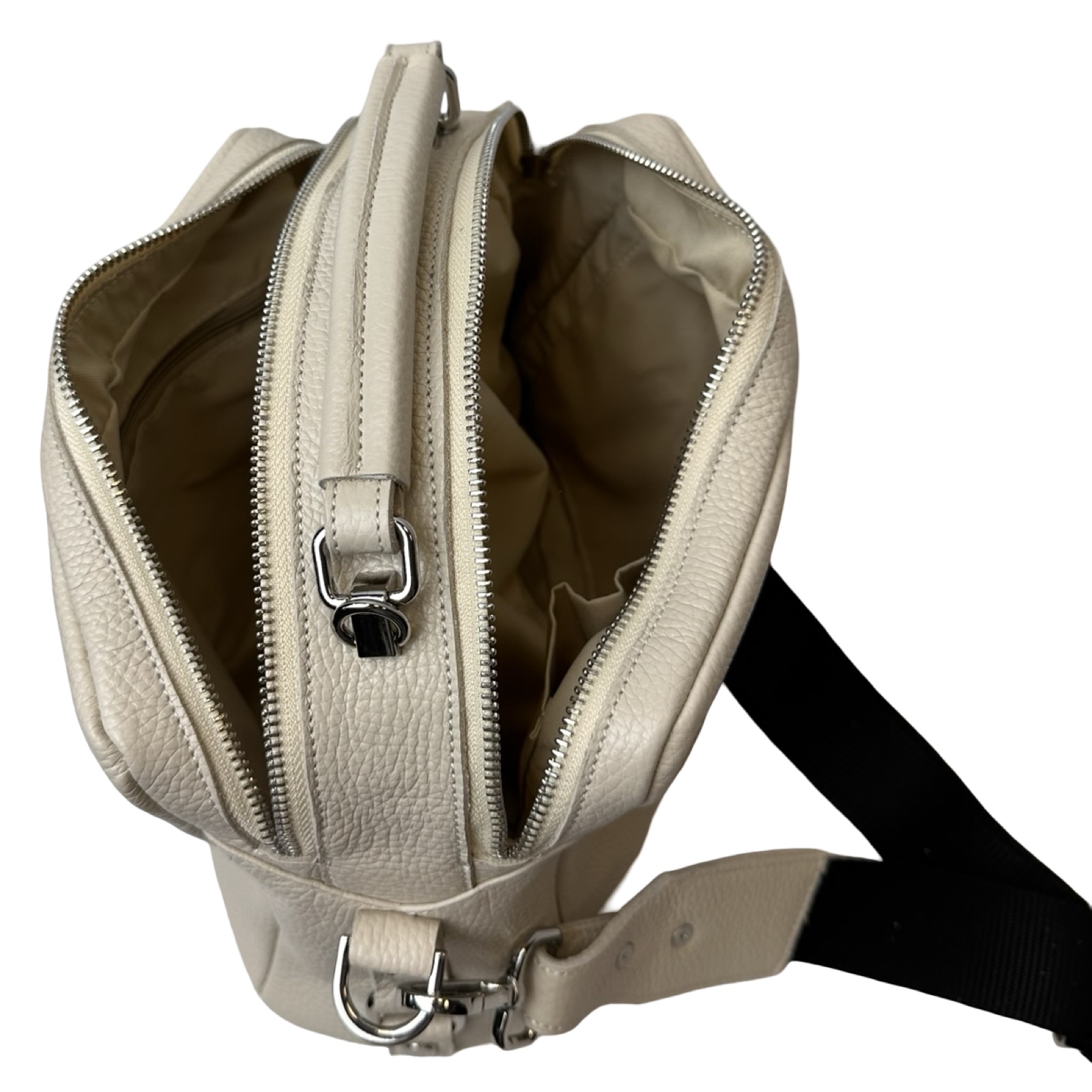 Tato elegantní dámska kabelka má dvě samostatné přihrádky, každá uzavíratelná na zip, což zajišťuje přehledné a bezpečné uspořádání vašich věci.