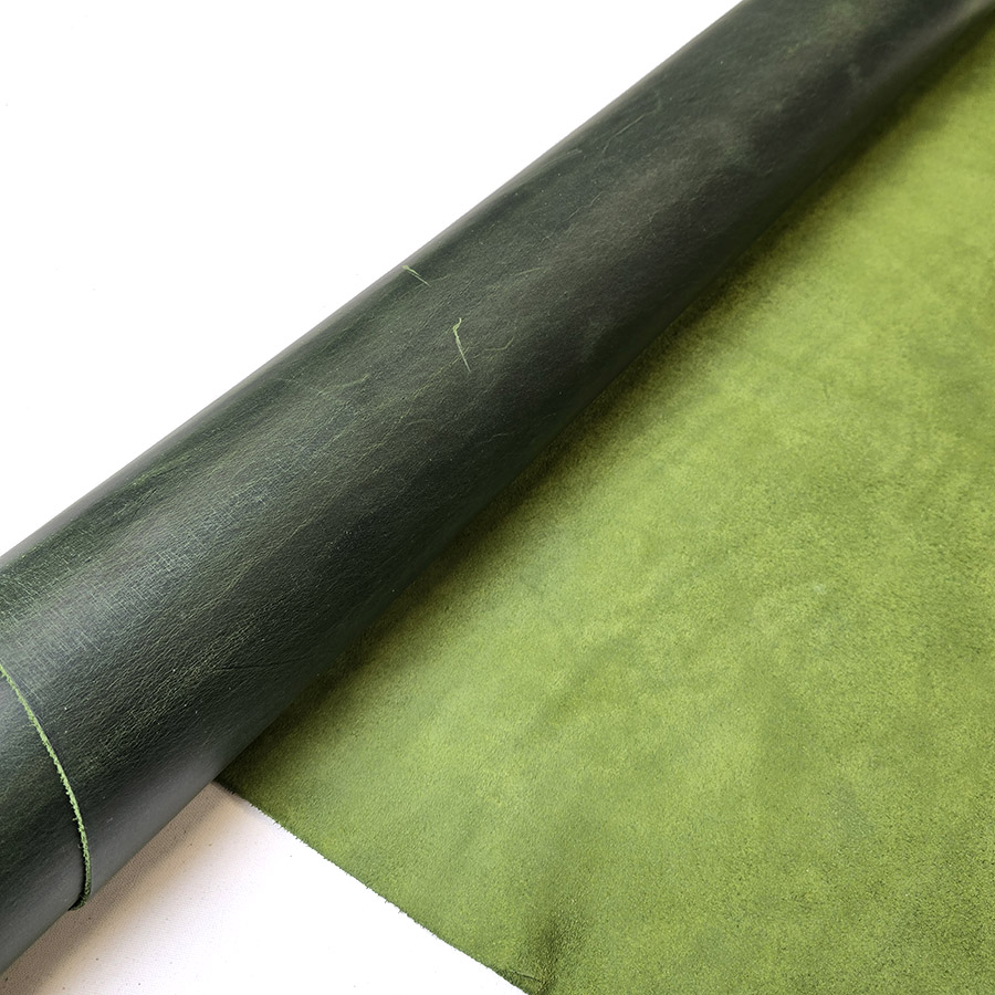 HOVĚZÍ KŮŽE / TŘÍSLOČINĚNÁ HLAZENICE – OLIVOVÁ – CRAZY HORSE – 1,8 – 2,0 mm