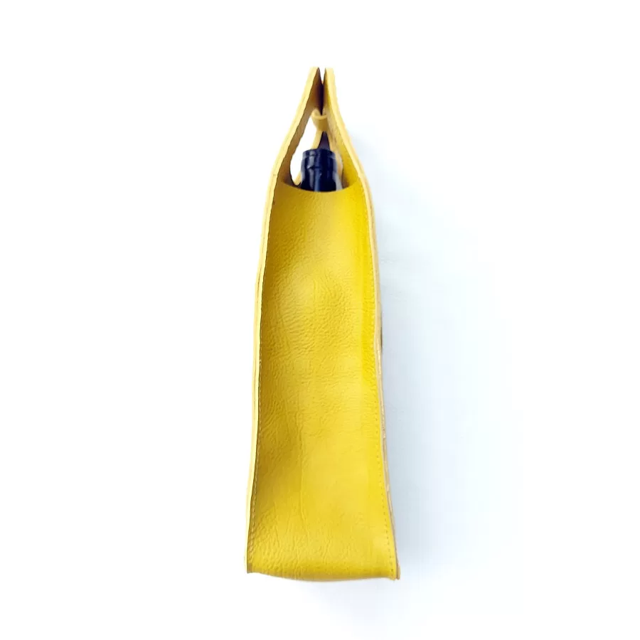 Kožený obal na víno – žlutý