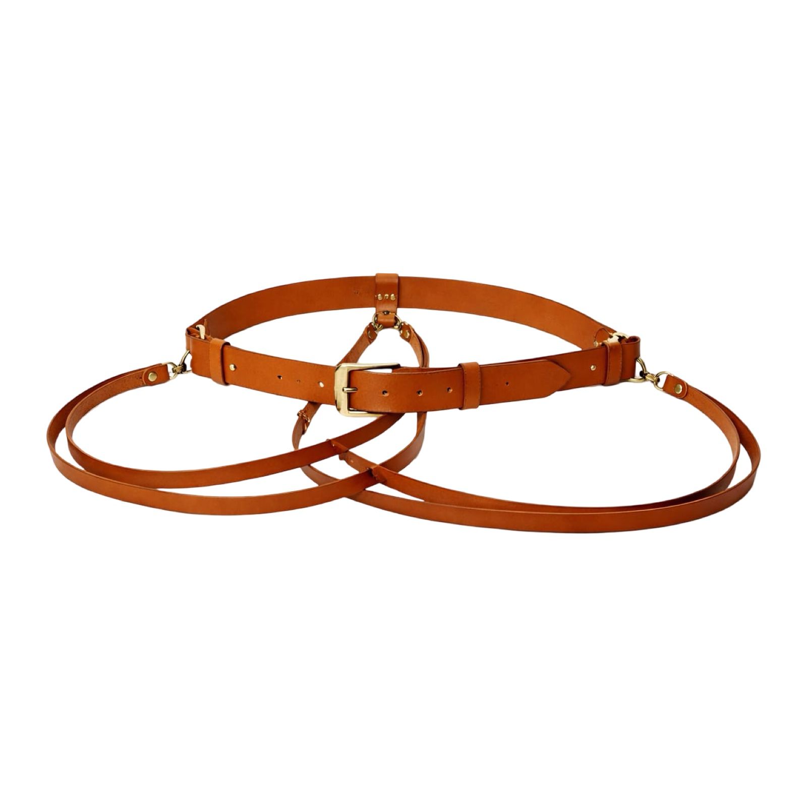 KOŽENÝ POSTROJ – LEATHER HARNESS – HNĚDA – STAROMOSAZNÉ KOVÁNÍ